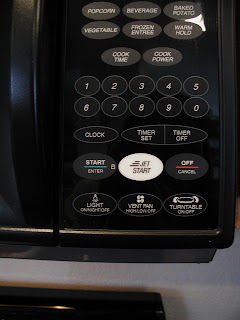 "What's that?" "What baby?" "THAT -(as she is pointing to the microwave)" "The microwave" I say. She says "What's that button?" "Which button" "THAT ONE - (she points to the turntable button pictured below)"